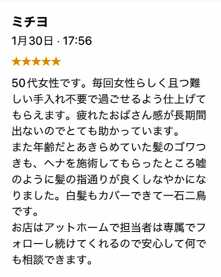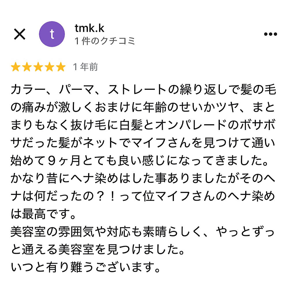 特に白髪を気にしていらっしゃる女性のお客様にはおすすめで、定期的に続けることで白髪をカバーしながらサラサラ艶々の髪を手に入れることができます。